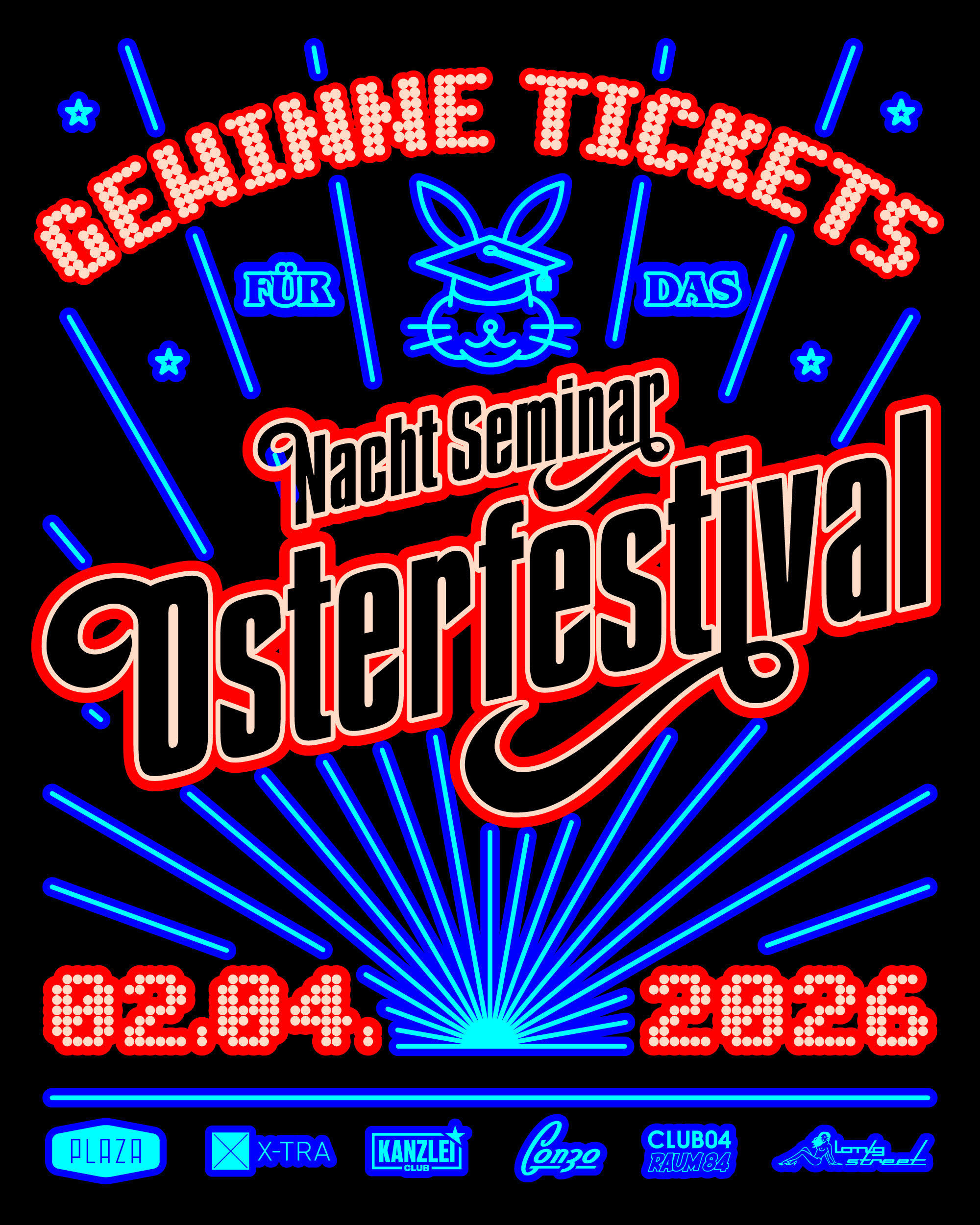 Mir händ Tickets fürs Nachtseminar Osterfestival zum verschenka! Das Event findet nöchst wucha Donnerstag 02.04.2025 statt, und z Ticket berechtigt uf iitritt in alli uufgfüahrti Clubs :)